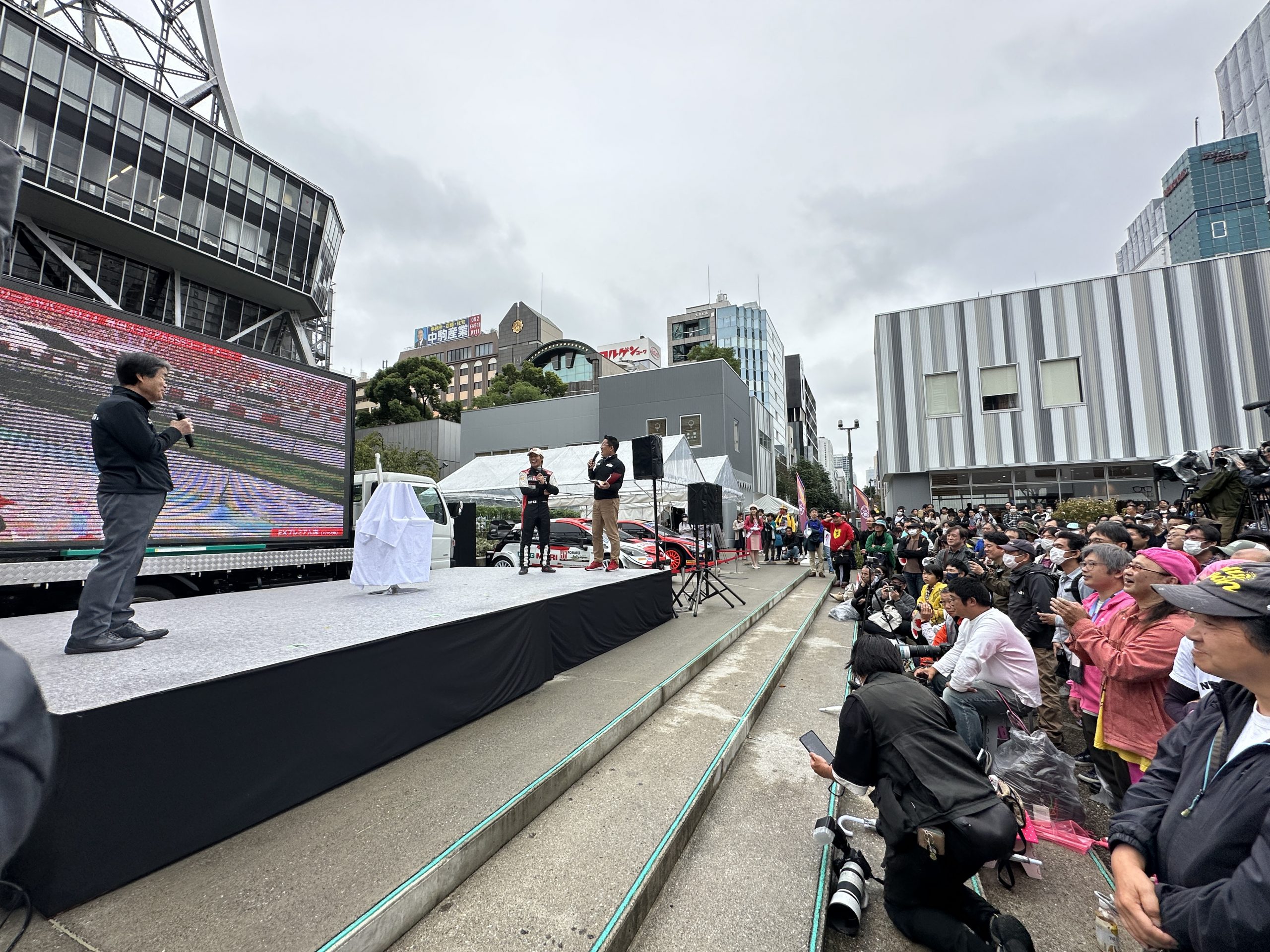 中部電力MIRAI TOWER(名古屋テレビ塔)前の特設会場では実行委員会の太田稔彦会長(豊田市長)が豊田スタジアムでのスーパSS実施を発表。