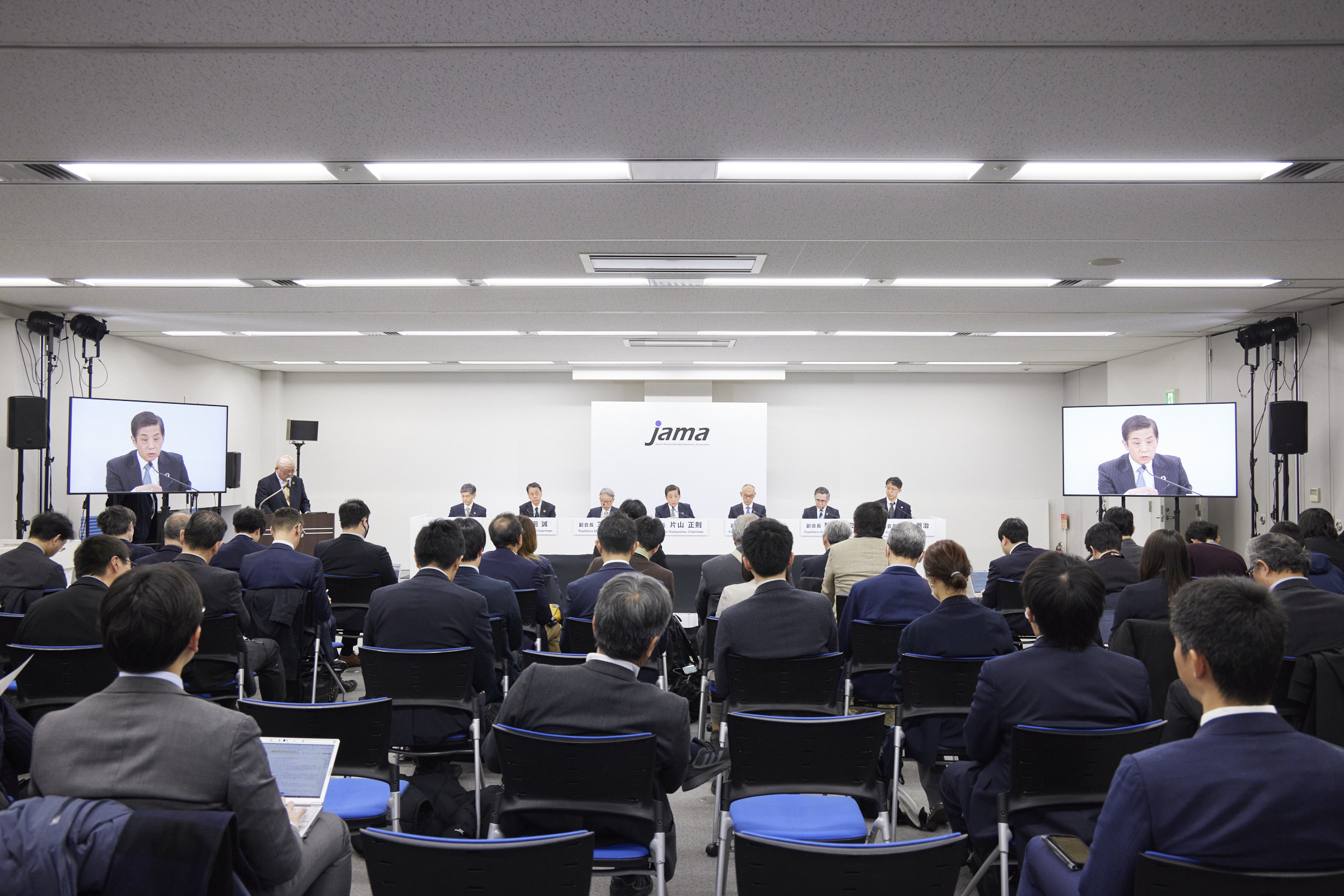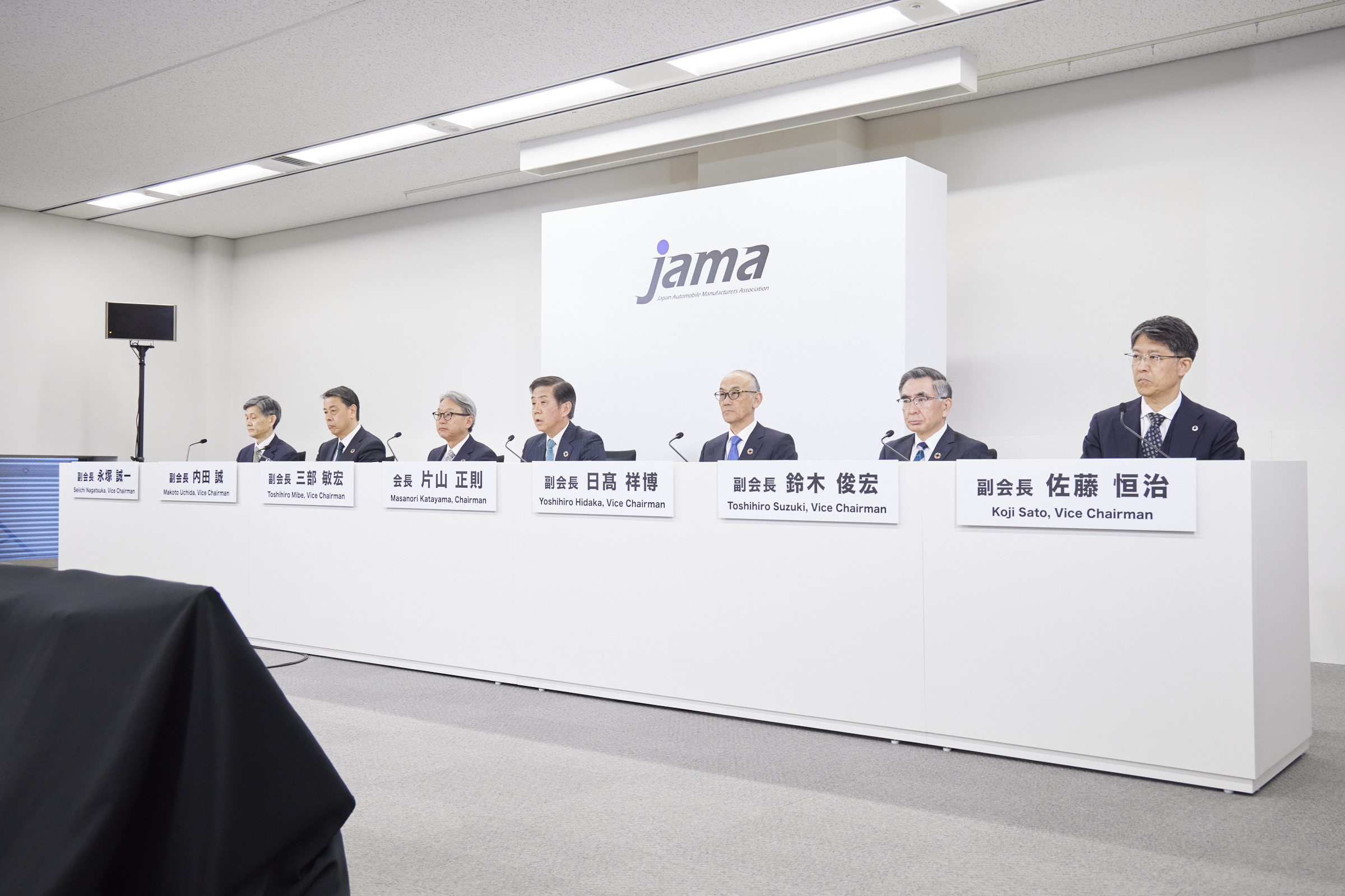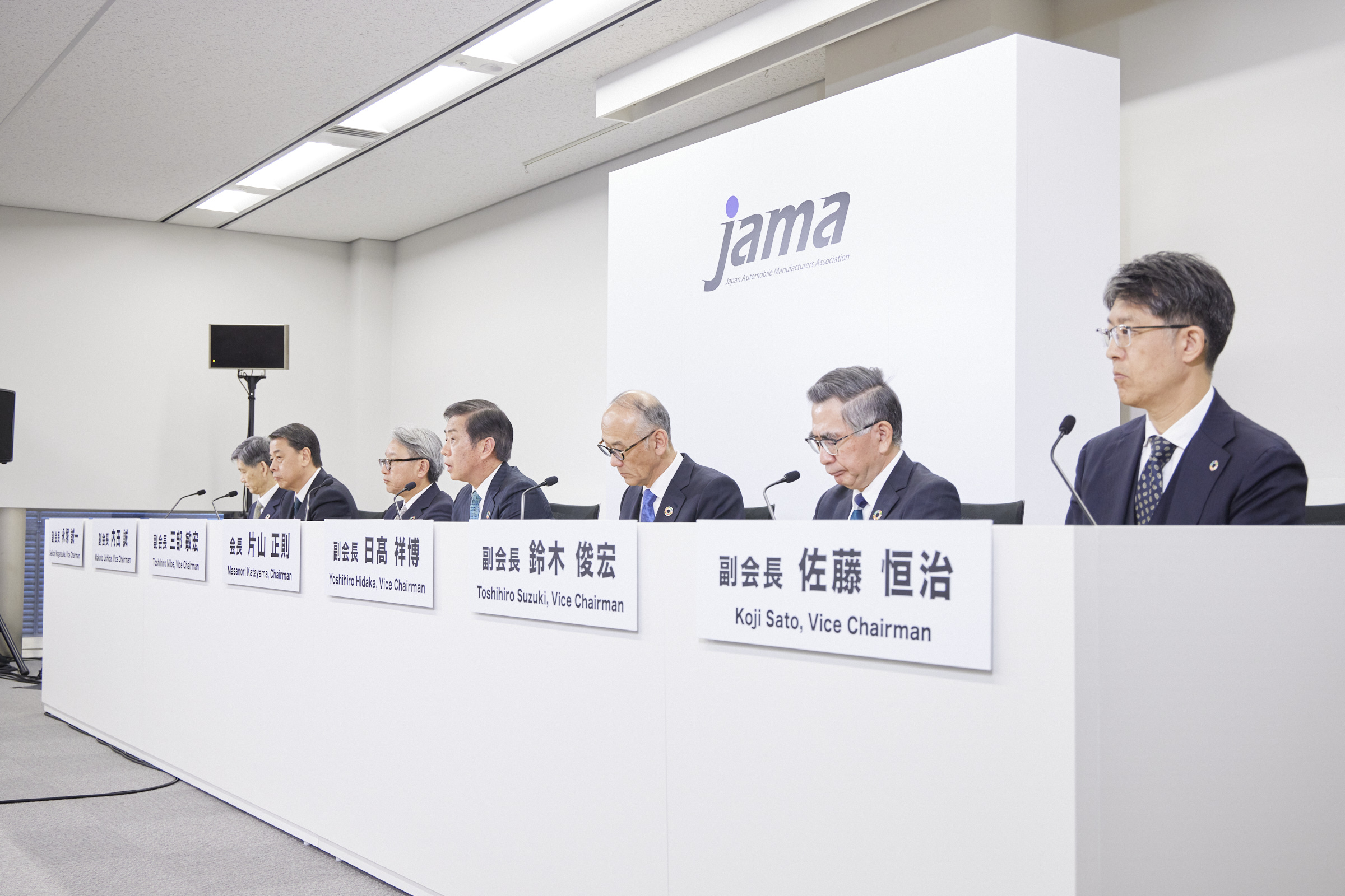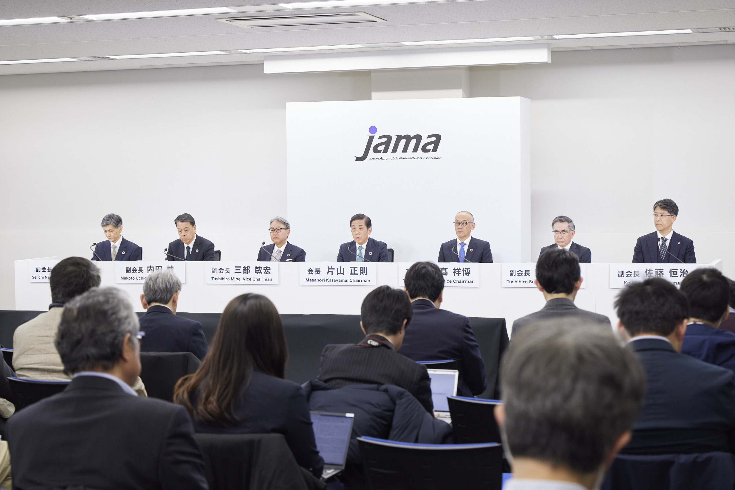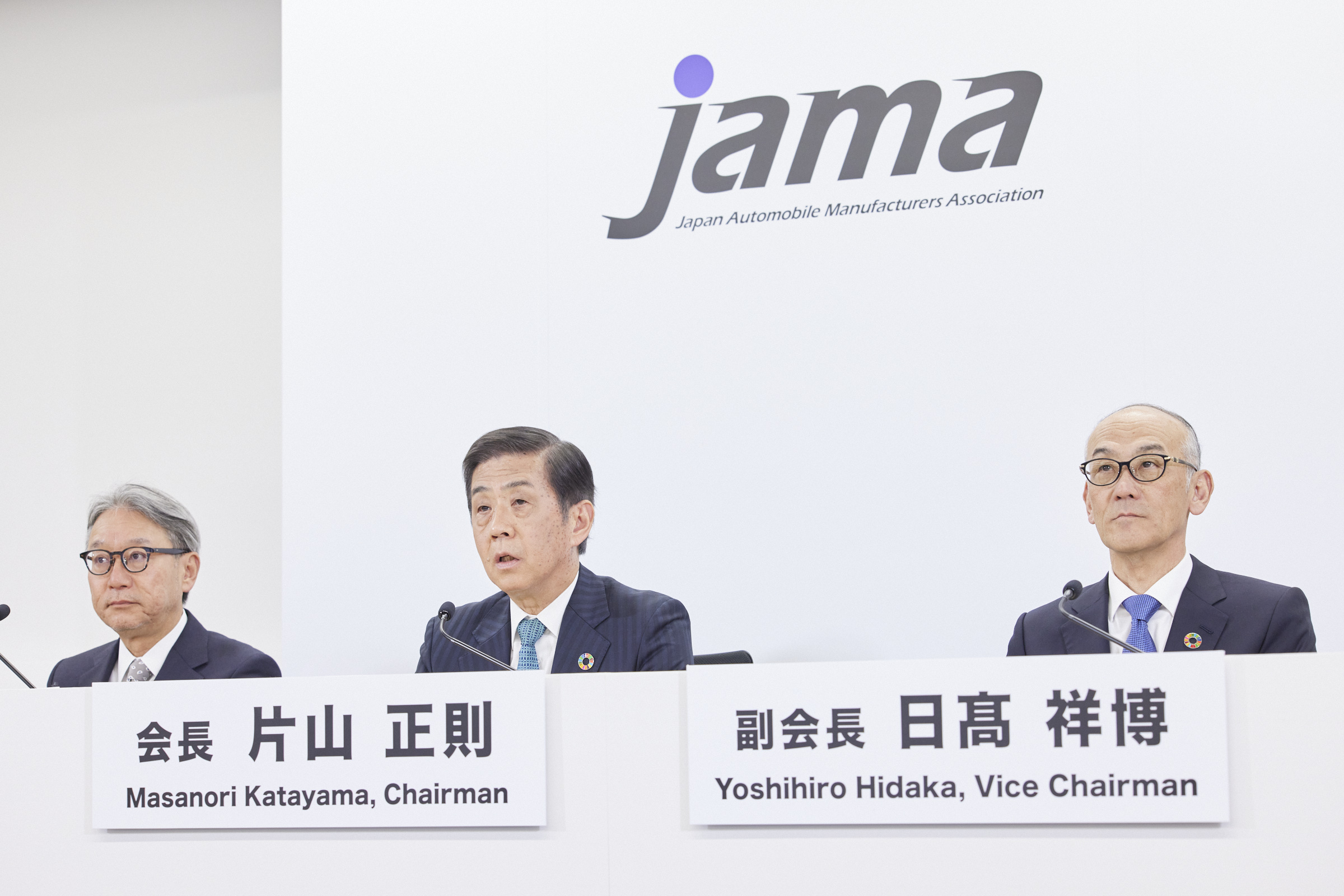 片山会長を我々副会長、理事がしっかりとサポートしながら、全員が自動車業界の課題解決に向けて積極的に取り組んでいけるようにしたいと思ってます。自工会として、ワンボイス、原理原則に基づいて正しい情報を発信できるようにしていくということ。そして、異業種も巻き込みながら日本の発展に寄与できるように頑張りたいと思ってます。