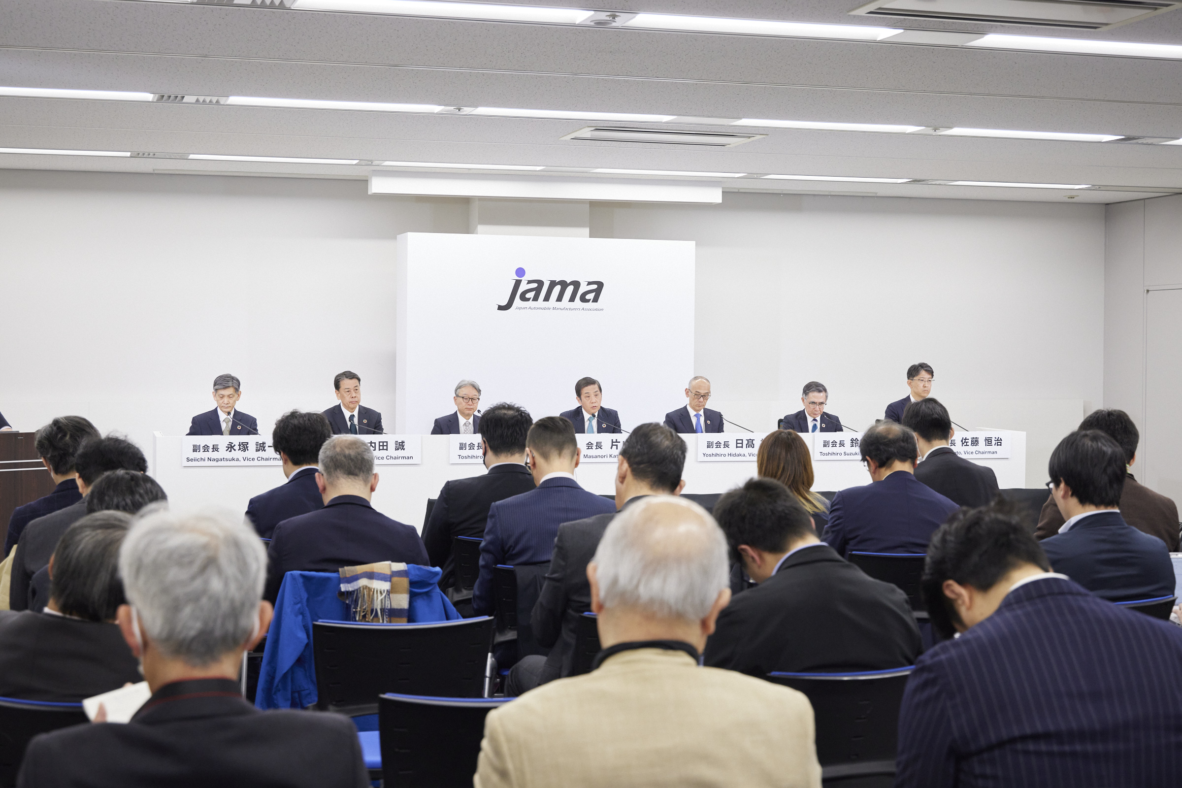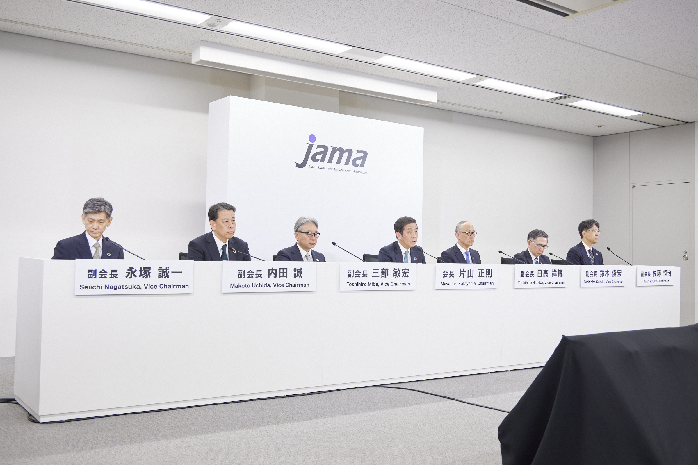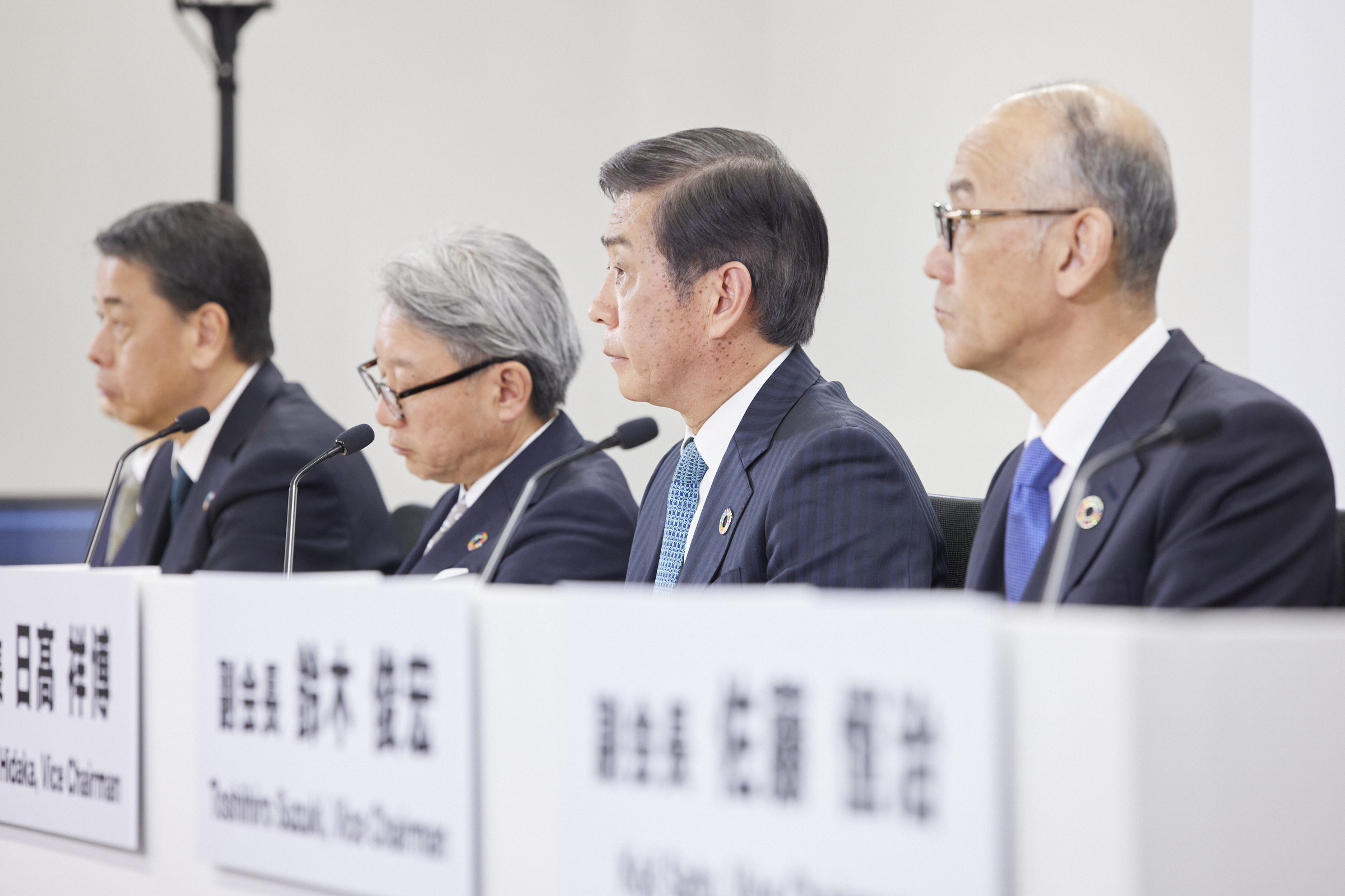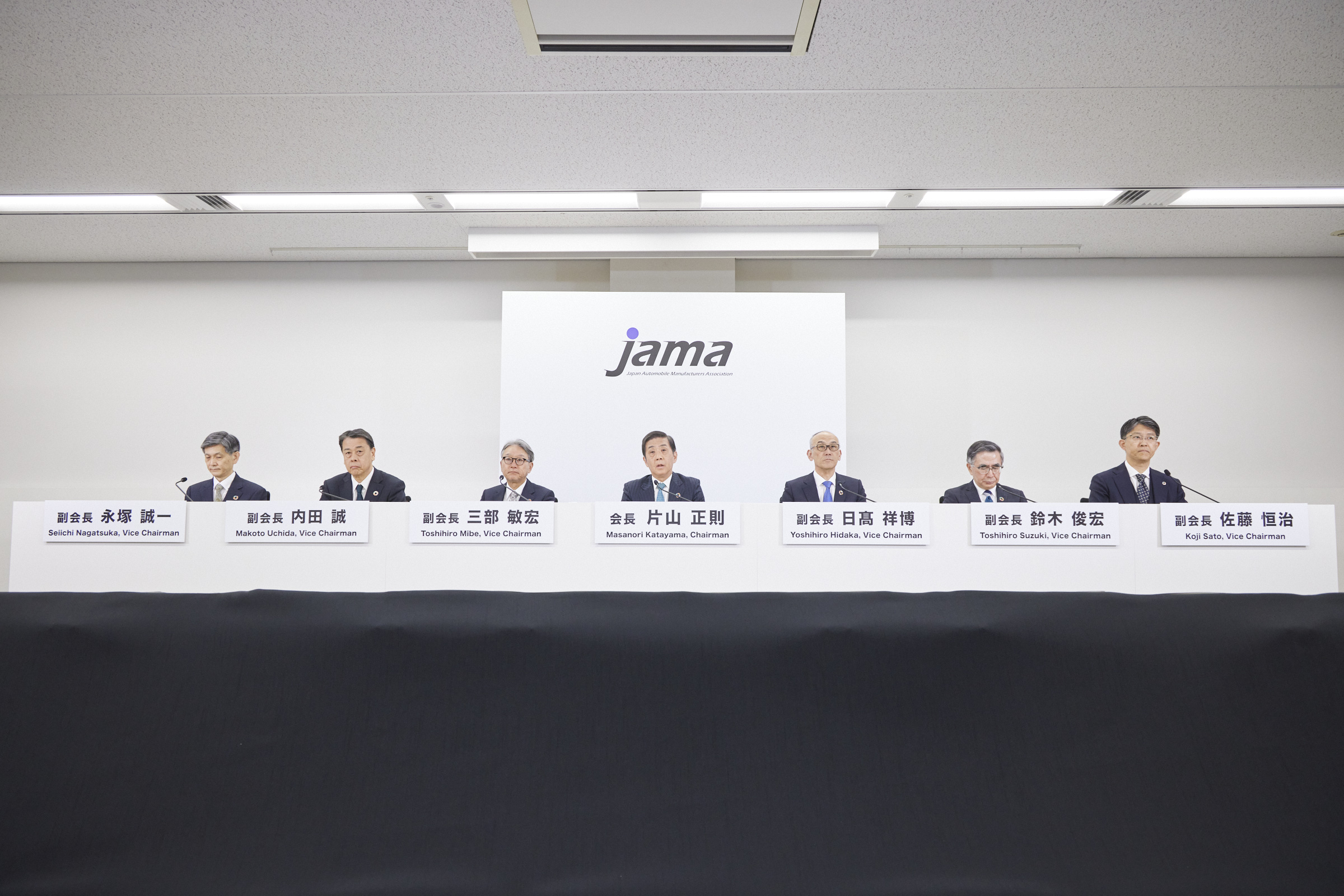その他の課題についても、ここにお集まりの副会長の皆さま方と一緒にオーナーシップで取り組んでまいりますが、各副会長にて取り組む課題の調和を図り、自動車産業の枠を超えて経団連モビリティ委員会企業さまの皆さま方との連携や官邸との懇談会等を通じましてオールジャパンでの取り組みを加速してまいりたいと考えております。