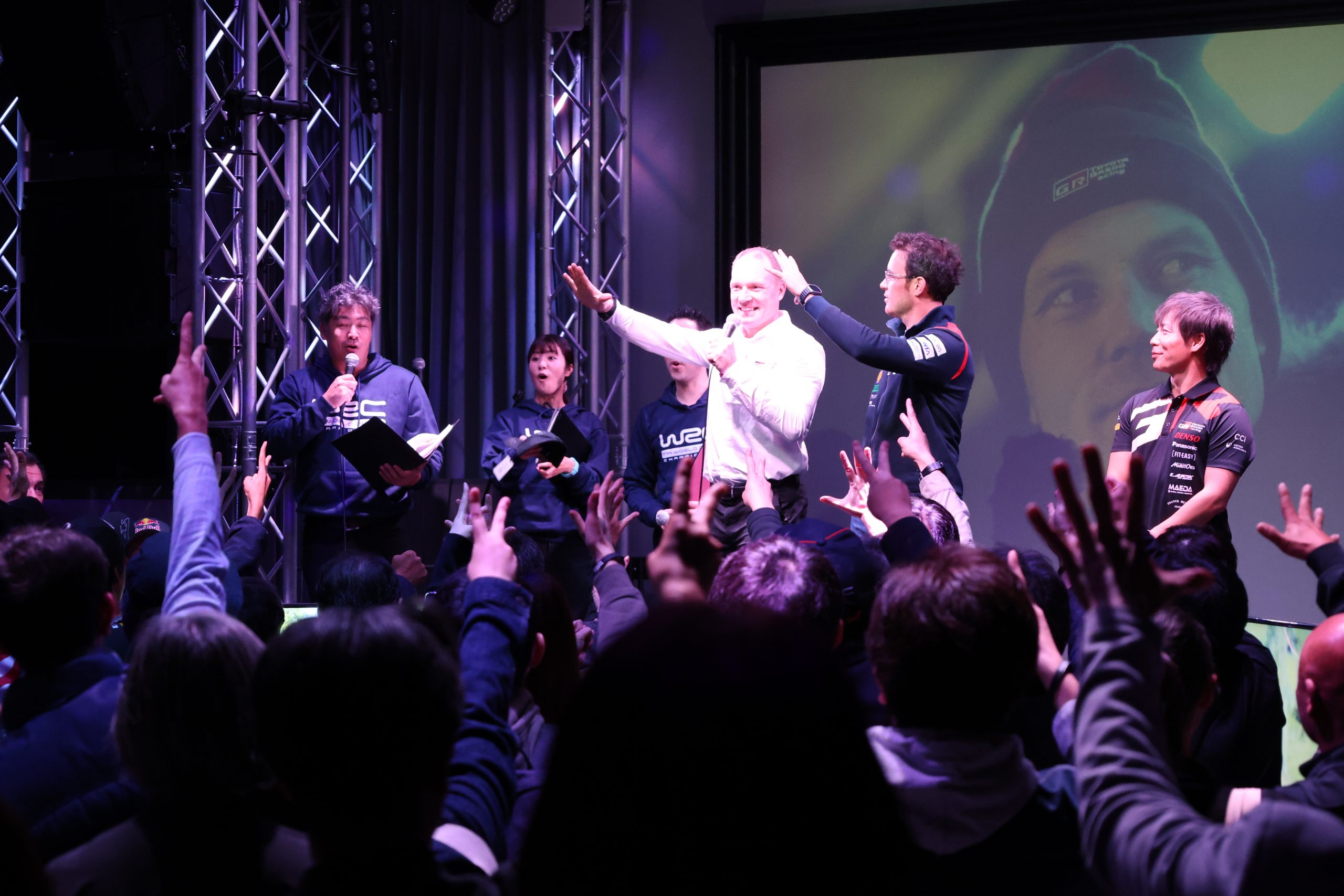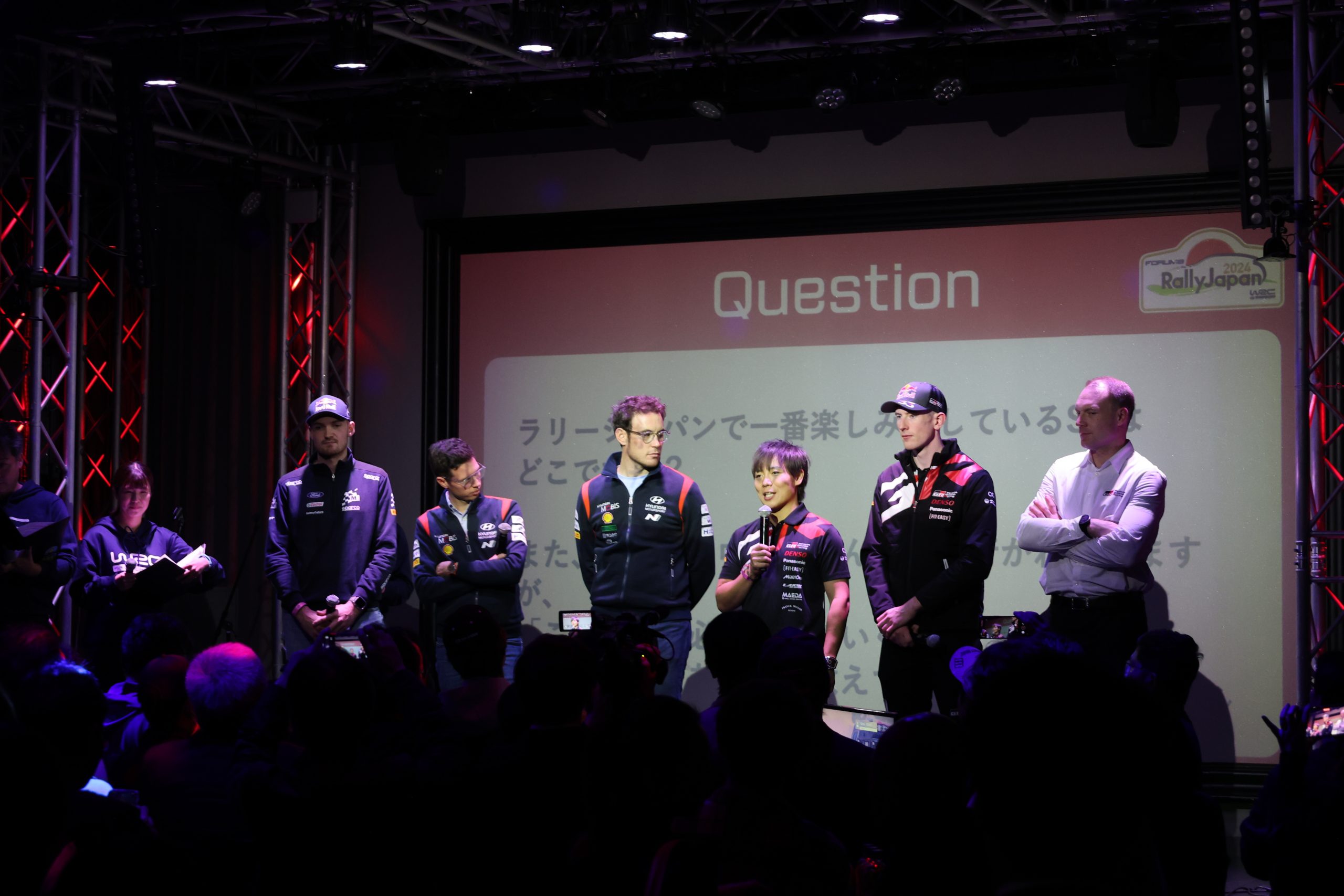 出演者はヤリ-マティ・ラトバラ チーム代表(TOYOTA GAZOO Racing WRT)、勝田貴元選手、エルフィン・エバンス選手、ティエリー・ヌービル選手(HYUNDAI SHELL MOBIS WORLD RALLY TEAM)、マーティン・ヴィーデガ選手、グレゴワール・ミュンスター選手(M-SPORT FORD WORLD RALLY TEAM)と豪華メンバーが勢揃しました。