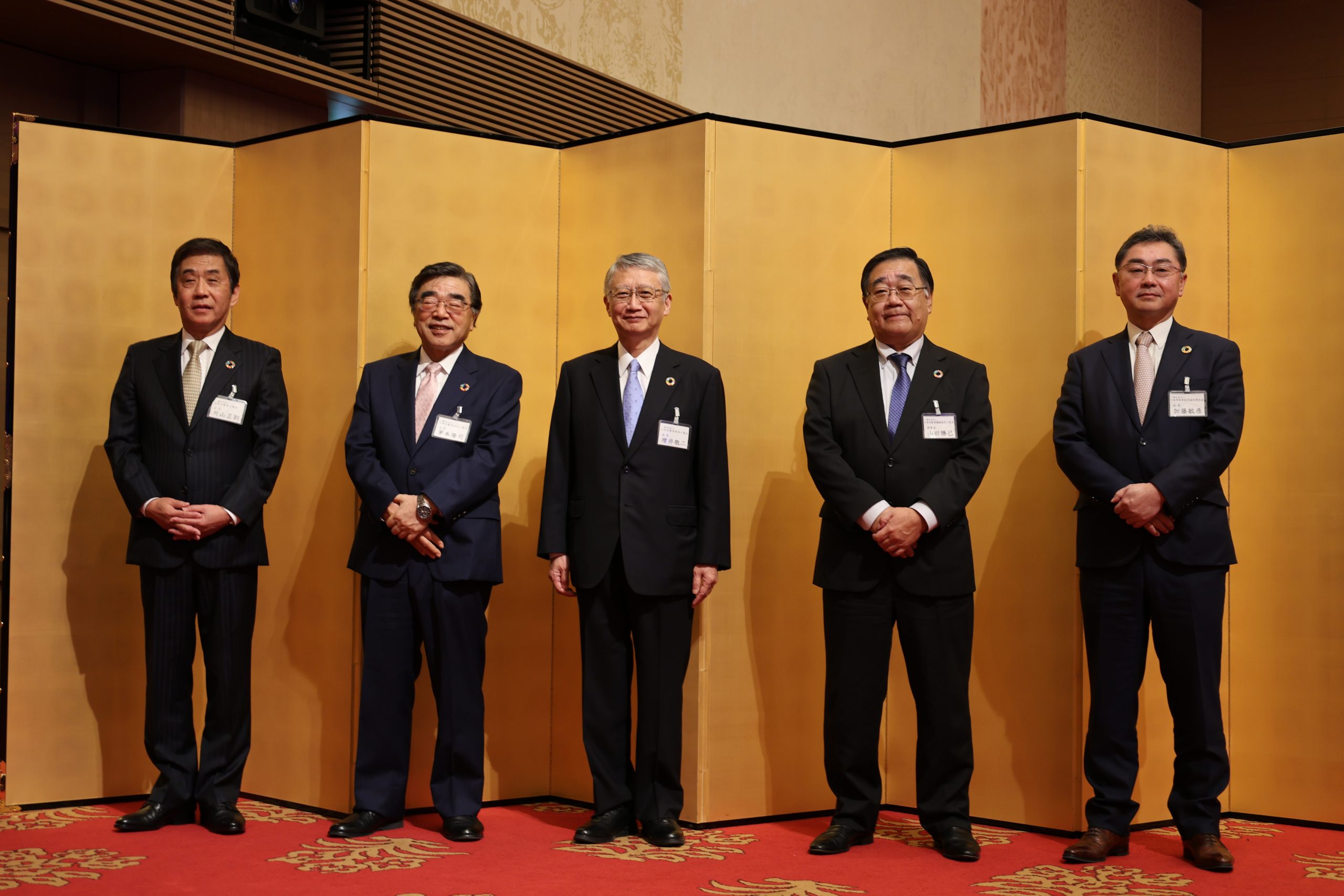 - 左から)自工会会長片山正則、部工会茅本隆司会長、車工会増井敬二会長、自機工山田勝己理事長、自販連加藤敏彦会長