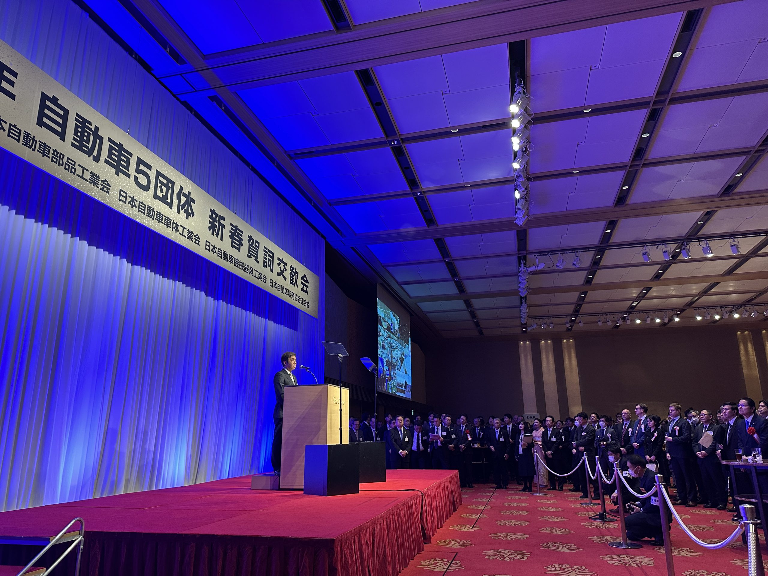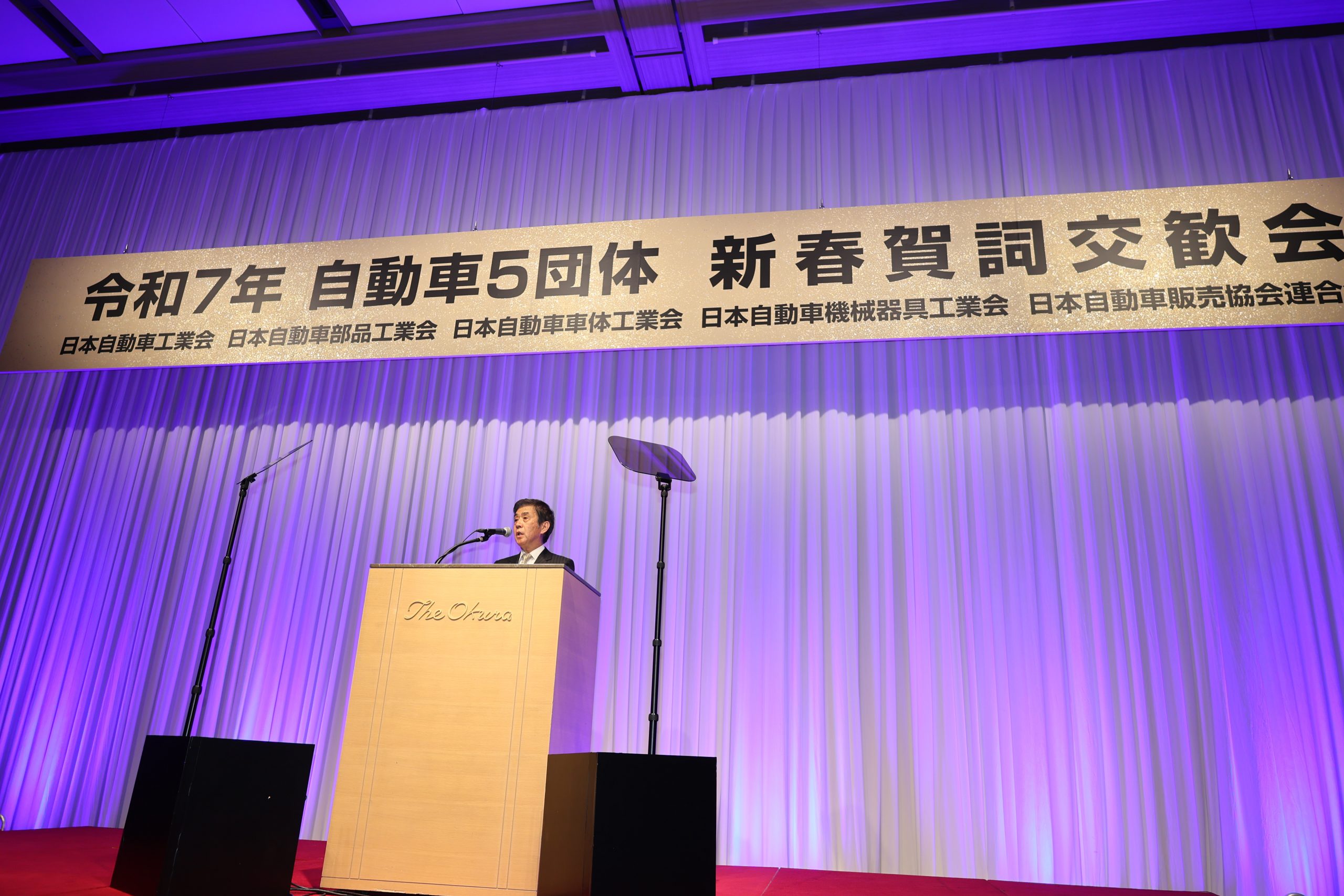 2025年1月7日、自動車5団体(自工会、部工会、車工会、自機工、自販連)による賀詞交歓会が都内で開催されました。およそ1,200名の参加者が見守る中、会長の片山正則が新年の所信を表明しました。あわせて、自動車産業の未来を描いた「自工会ビジョン2035」も発表されました。