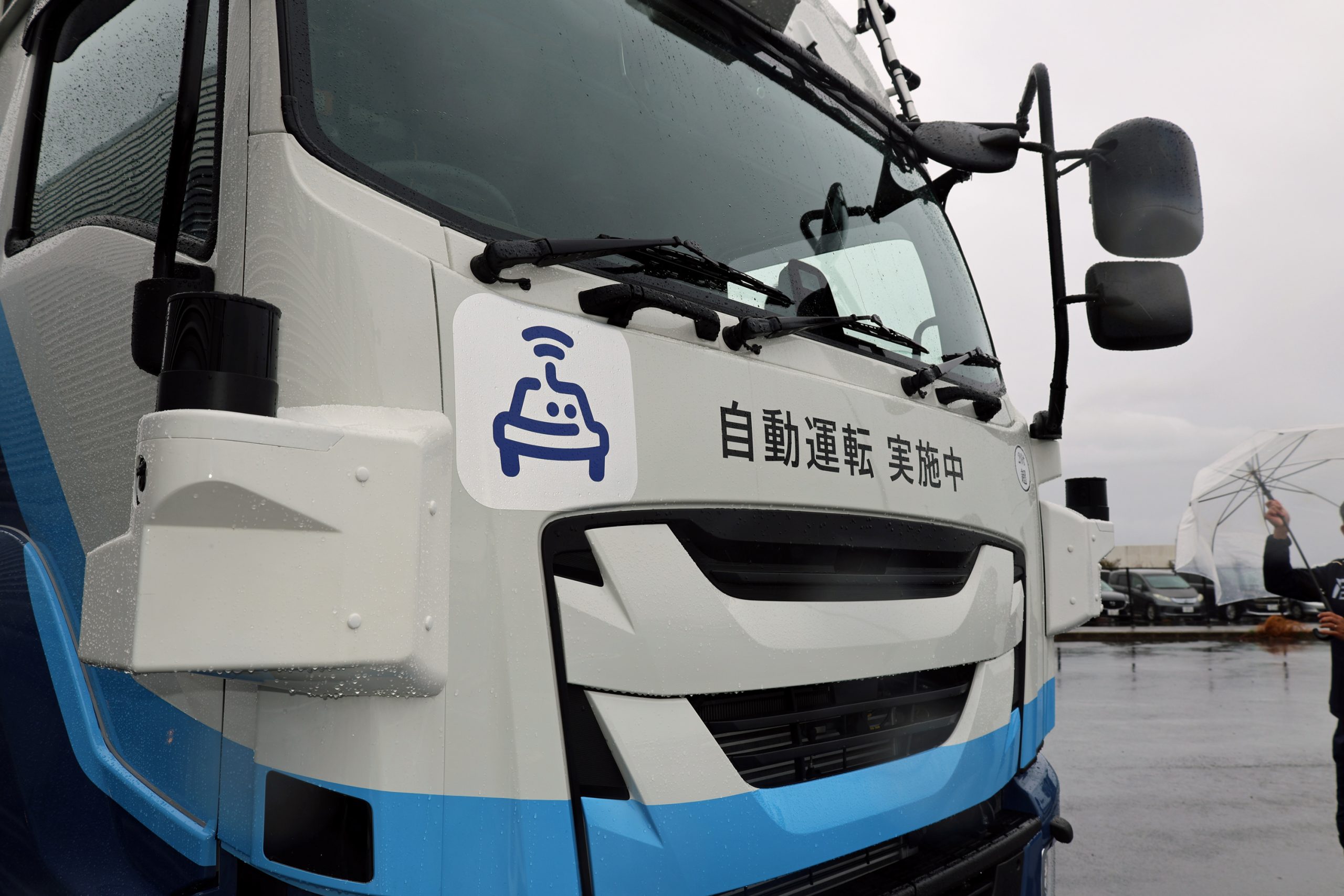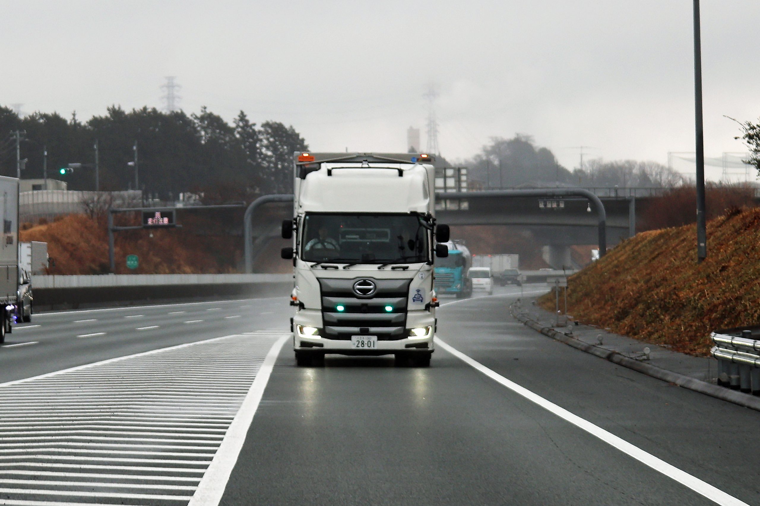 3月3日、新東名高速道路駿河湾沼津サービスエリア(SA)において昨年12月に続き2回目の自動運転トラックの実証実験が報道陣に公開されました。