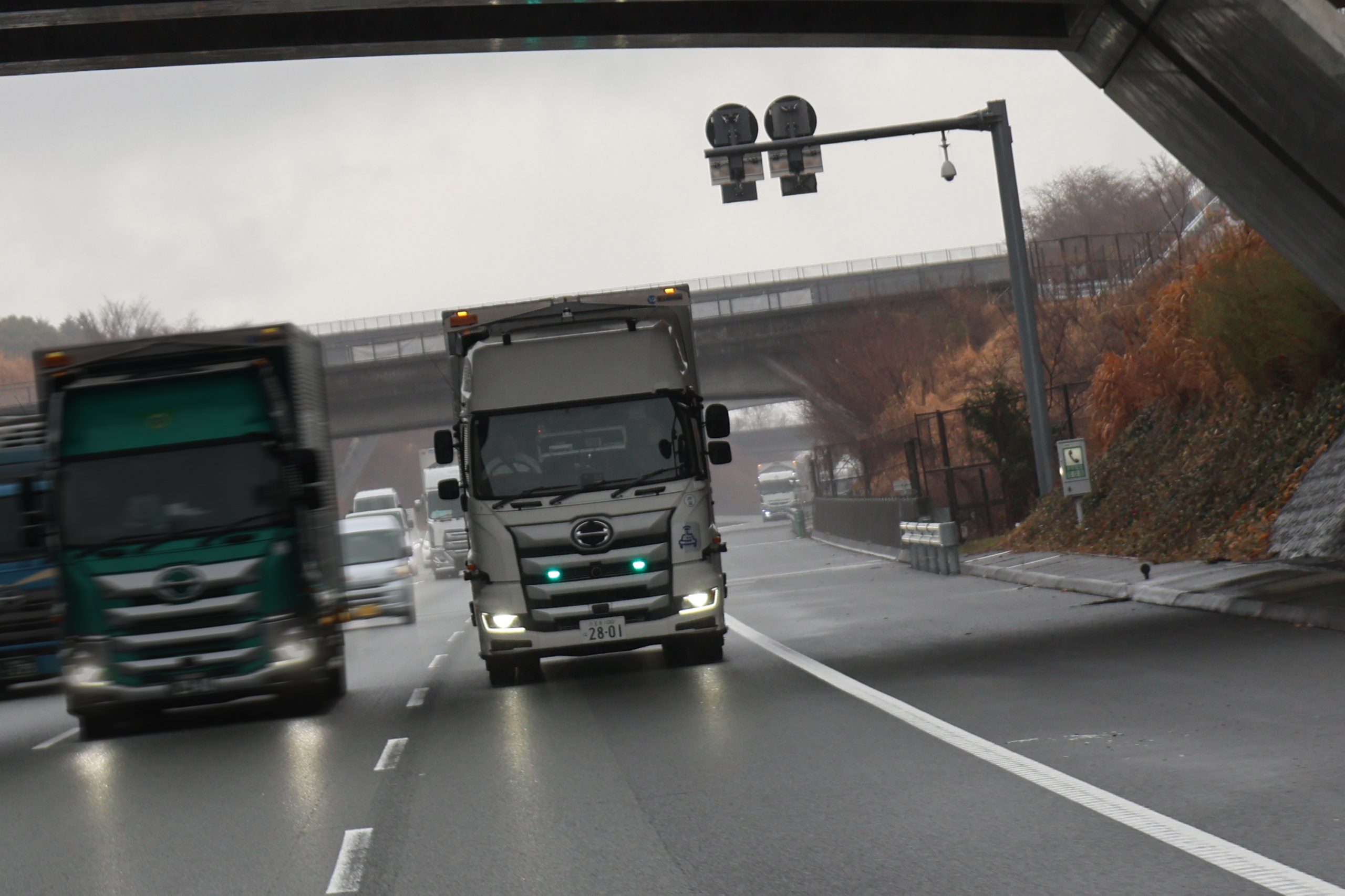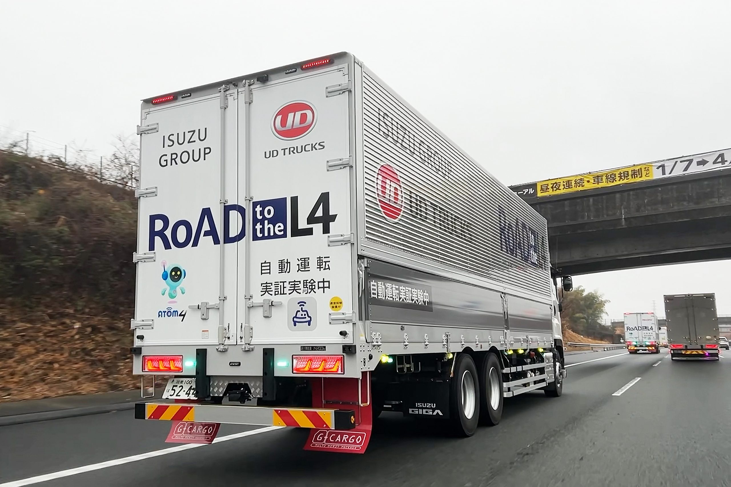 このプロジェクトには旅客と貨物輸送の双方における無人自動運転サービスの研究開発などを行う4つのテーマがあり、「テーマ3(高速道路における高性能トラックの実用化に向けた取り組み)」では2025年以降に高速道路でのレベル4自動運転トラックやそれを活用した隊列走行を実現することを目標に、車両技術だけでなく運行管理システムやインフラなどの外部支援、情報など事業化に必要な環境整備に取り組んでいます。
